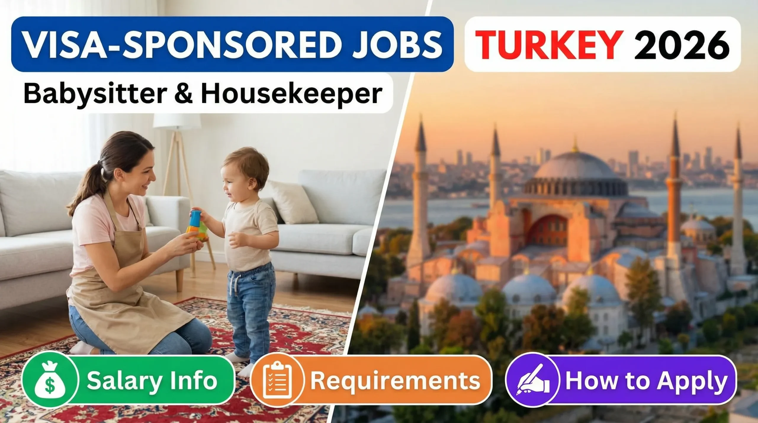 Visa-sponsored Babysitter and Housekeeper jobs in Turkey in 2026 provide structured domestic employment opportunities for eligible foreign workers. With proper work permits, accommodation benefits, and growing demand in urban areas, Turkey remains a viable destination for domestic workers.